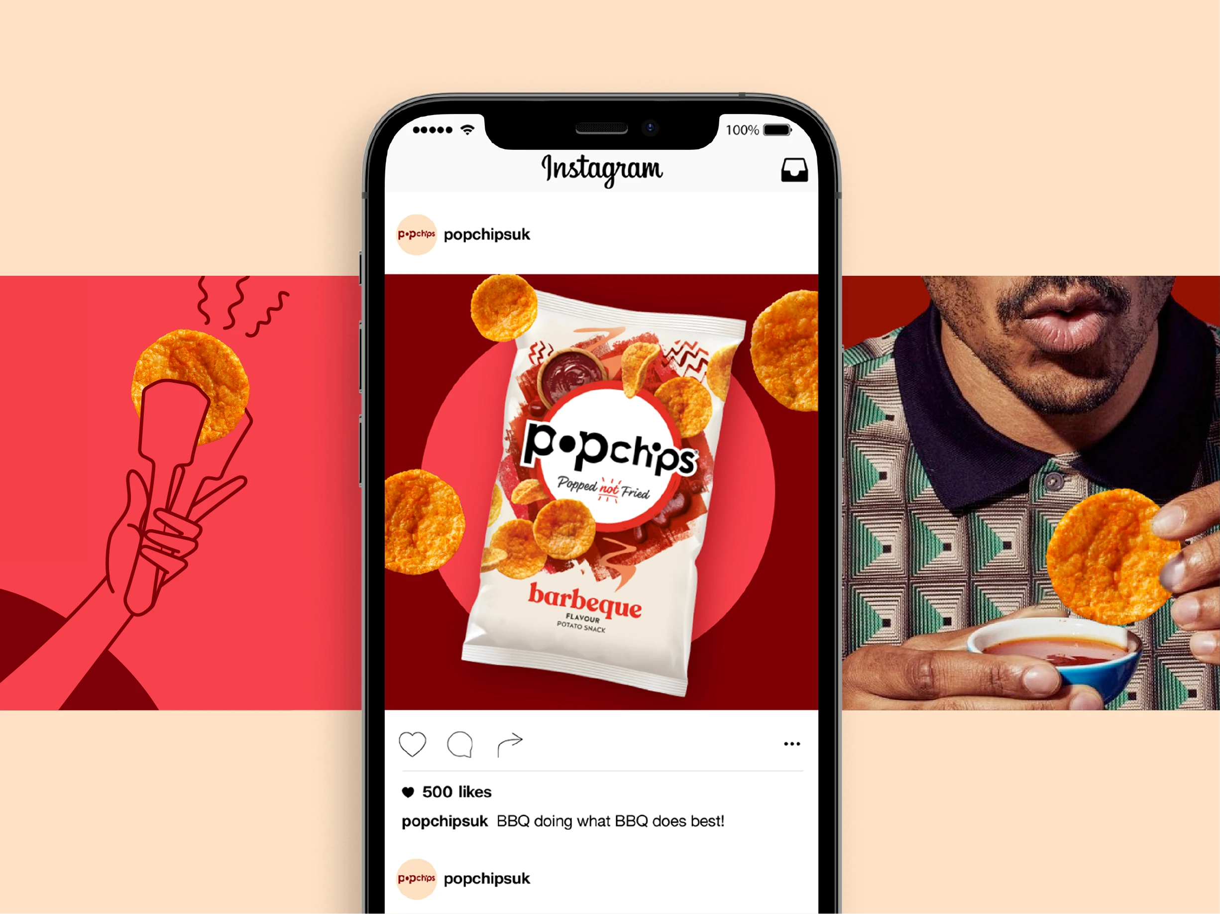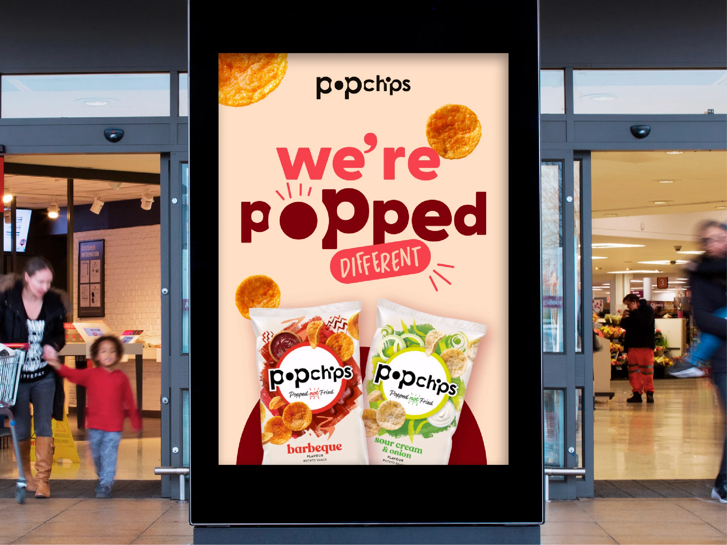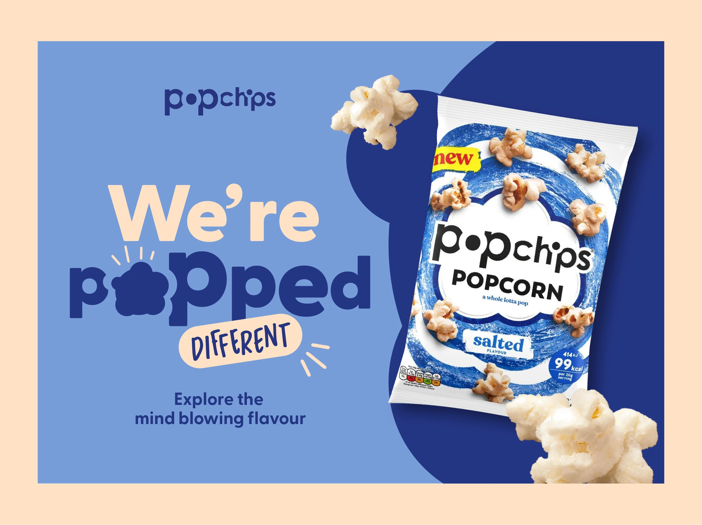 Popchips required a brand refresh to cement their position as the original popped snack in an increasingly crowded market. Popchips wanted to bring a healthy dose of good vibes to shake up the status quo. The identity for Popchips centred around the brand strategy of a snack that pops the everyday with rebellious positivity. With the thought that one spark of positivity can turn things around. The dynamic visual language created was inspired by the ethos of positive rebellion, using a quirky light-hearted photography and illustration style, alongside a playful typography design. The visual identity uses clean bold design elements to let the photography and typography come to the forefront.